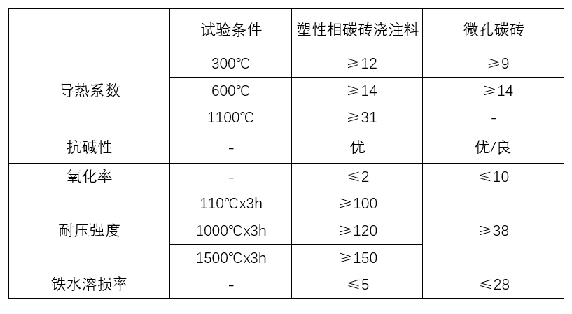 答:塑性相碳磚澆注料澆注不是自焙碳磚,他們完全不是一回事,他們的材料成分、施工工藝、運(yùn)作機(jī)理有著巨大的差別。塑性相碳磚澆注料不需要燒成,并且它本身在常溫下有很高的導(dǎo)熱性能和強(qiáng)度。常溫(20℃)導(dǎo)熱系數(shù)大于10,耐壓強(qiáng)度大于30MPa。