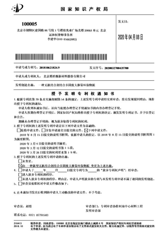 近日,由北京精冶源新材料河北有限公司(簡稱:精冶源;股票代碼:831091)研發(fā)的一種新型結(jié)合劑環(huán)保炮泥喜獲國家知識(shí)產(chǎn)權(quán)局發(fā)明專利授權(quán),專利號(hào):201810621824.9。這是精冶源在爐前炮泥領(lǐng)域獲得的第四項(xiàng)國家專利。 傳統(tǒng)炮泥大多以焦油或樹脂為結(jié)合劑,存在諸多缺點(diǎn):焦油系炮泥在使用過程中會(huì)產(chǎn)生苯并芘,污染環(huán)境并?!?/p>